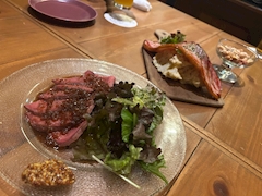 今日21時から出勤します🙌 昨日の出勤前にはなんと 美味しいローストビーフなどなど お酒を片手に 左 さらちゃん🩵右 いぶちゃん❤️ 可愛い2人と美味しすぎるご飯行ってきた✌️ また行きたい!🥰 ちなみにお店はいぶちゃんチョイス♡ ̖́ 最高すぎた……センス良すぎ😳 コースターもオシャレ✨ もあꪔ̤̮ 👋🏻🎀❕